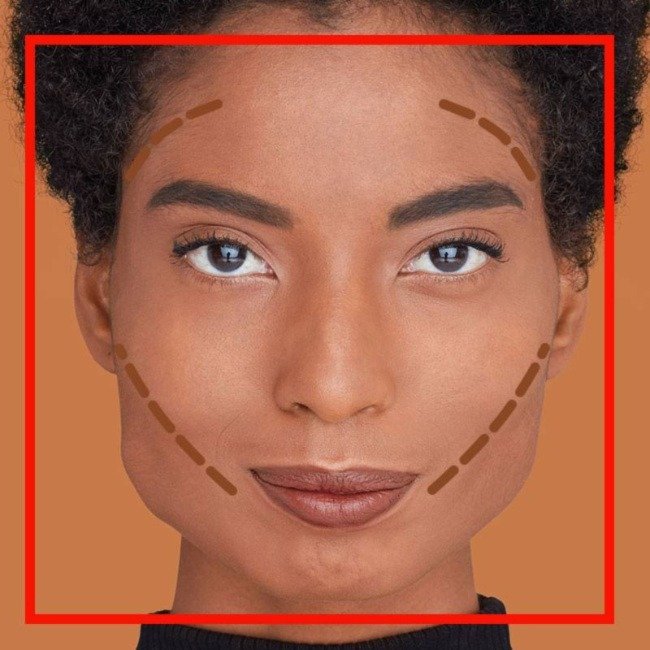 If your face is oval or longer, you may want to focus your contour on your forehead, more on the top and less on the temples. Contour your lower chin line to create a shadow and soften the point.